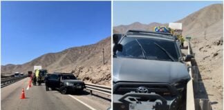 Tres personas lesionadas tras volcamiento y choque en Ruta 28 de Antofagasta
